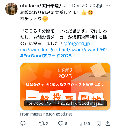 For Goodアワード2025がこうして開催できたのは、